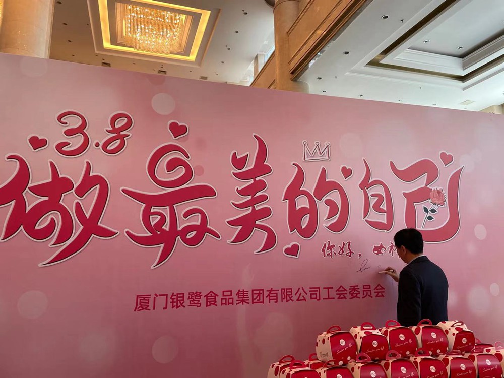 陽春三月,人面桃花相映紅。值此第111屆“三八”國際婦女節來臨之際,廈門銀鷺食品集團有限公司黨支部、銀鷺食品集團工會經過精心籌劃,為總部女職工舉辦了簡短而又隆重的紀念儀式。銀鷺食品集團董事長陳清水,首席執行官孫亦農及各有關中心總經理出席儀式。