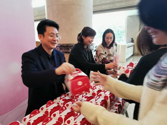 隨后,陳董、孫總等公司領導為女職工發放鮮花和小禮物,表達節日最美好的祝福。接到禮物的每位女員工笑顏如花,在鏡頭前留下了她們最燦爛的笑容,歡樂和溫馨彌漫在整個現場。