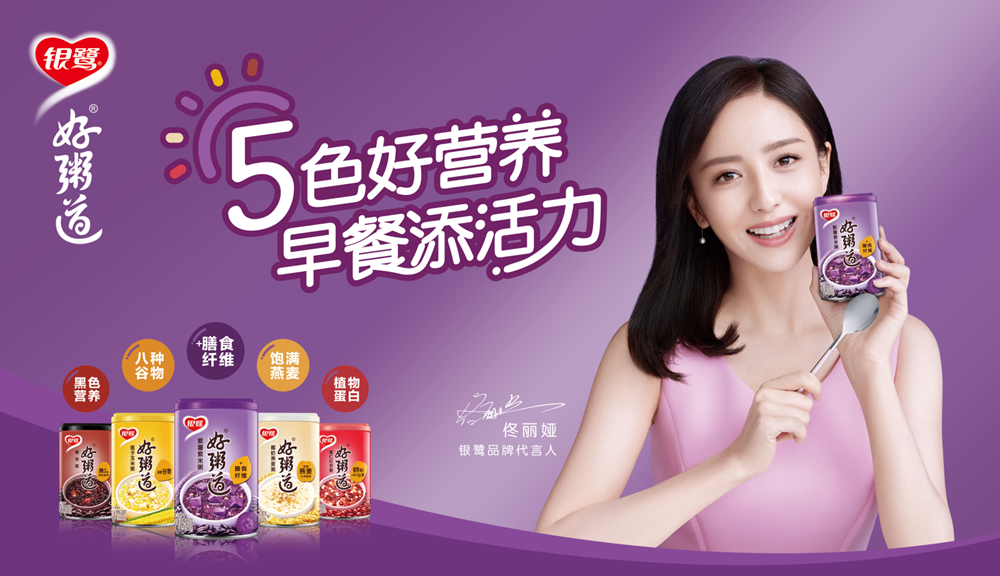 2021年4月30日,國民女神佟麗婭正式官宣成為銀鷺品牌代言人,首秀即攜手好粥道聯袂出演年度品牌大戲,新廣告圍繞全新溝通主題“五色好營養,早餐添活力”,強調了好粥道營養雜糧粥的定位,佟麗婭更化身活潑靈動的小仙女傾情助力,為現代、活力的演繹再添點睛之筆,形成獨特的品牌差異。